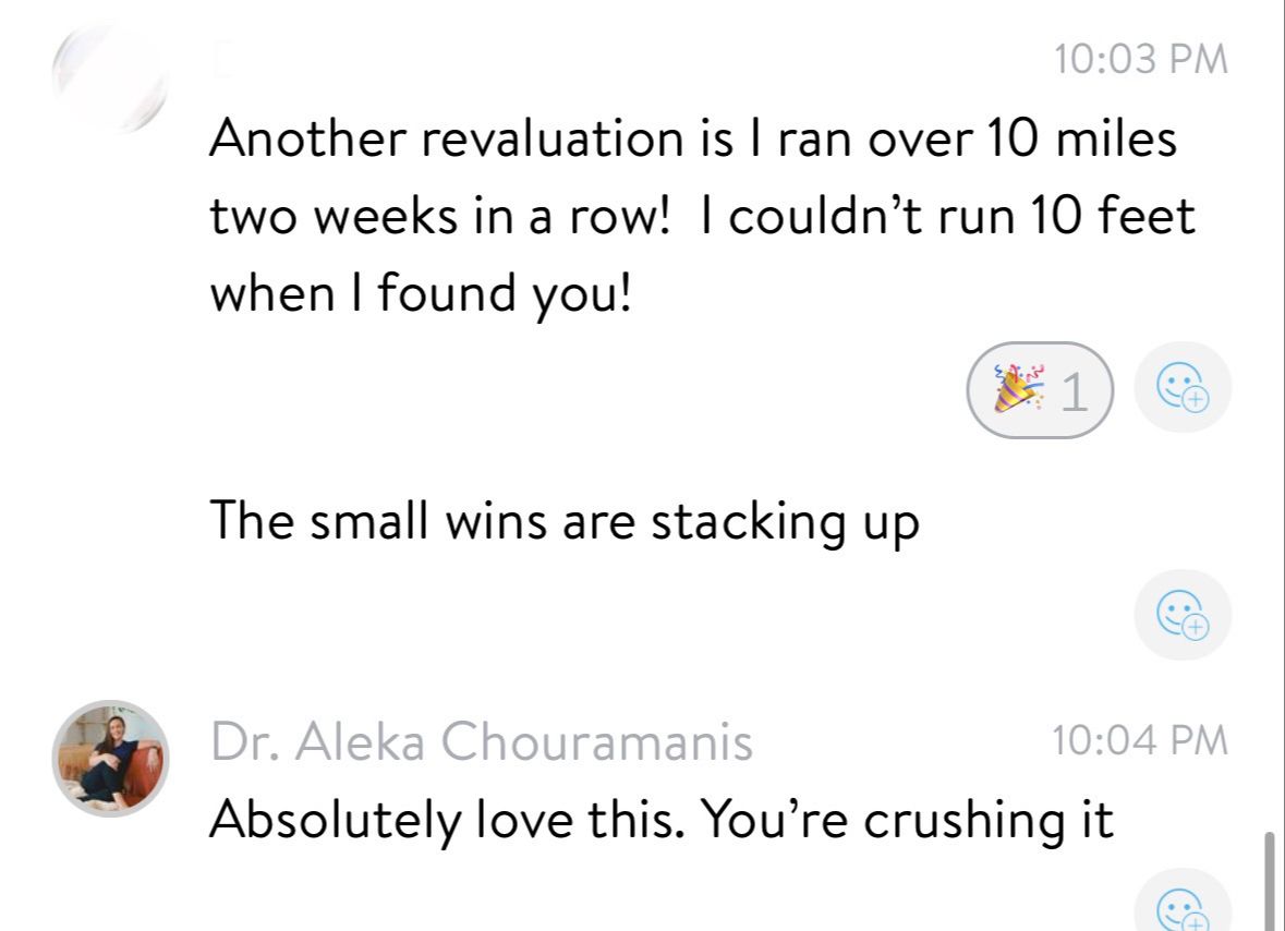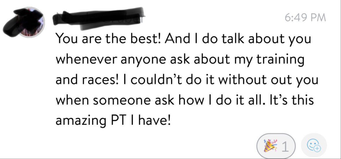 Janet had seen multiple PTs, tried run coaching apps, and tried doing whatever she could to solve her foot and hip pain on her own. She was convinced she would never run again. The emotion is palpable as we celebrate her success in running a marathon pain-free.
